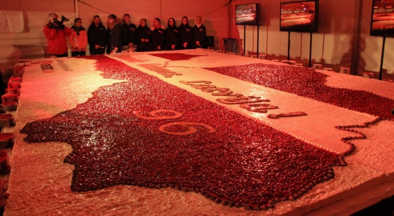 Кроме того, к дню рождения Латвии был испечен огромный торт, которым мог угоститься любой, пришедший вечером 18 ноября на Эспланаду. Площадь сырно-малинового торта весом более тонны составила 38 кв.м.