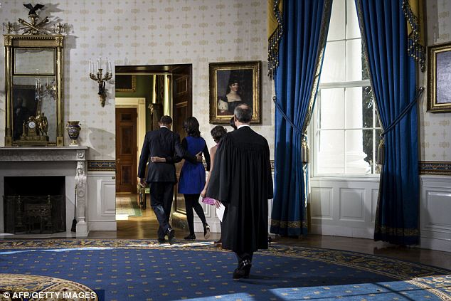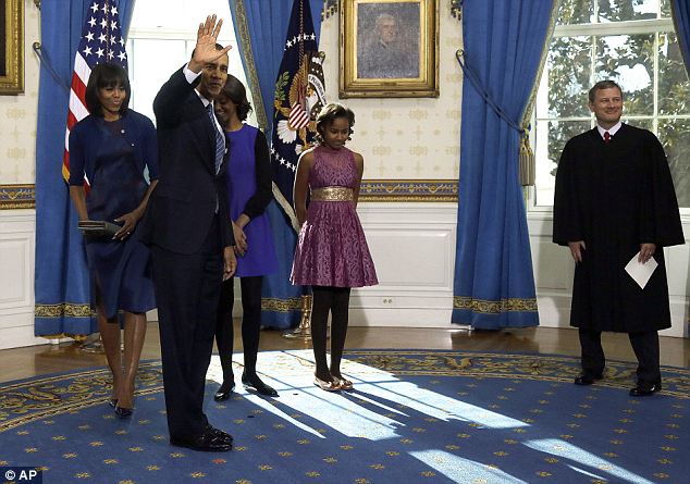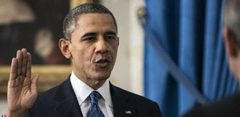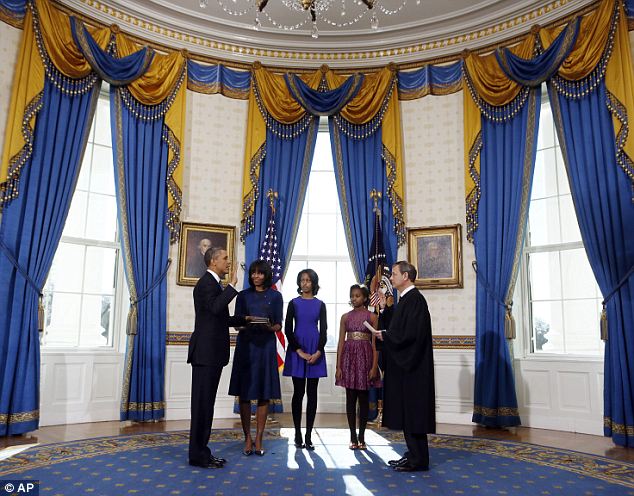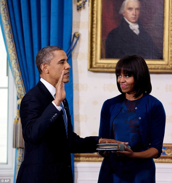 Барак Обама официально приведен к присяге в качестве президента США в ходе скромной церемонии в Голубой комнате Белого дома.