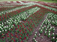 Более 17 000 белых и красных тюльпанов образуют логотип председательства Латвии в Совете ЕС. Темно-красный тюльпан — специально выведенный сорт цвета латвийского флага.