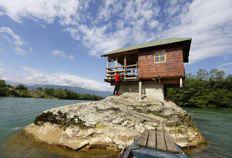 В Сербии посреди реки Дрина недалеко от города Баджина Баста находится необычный дом. Он построен на торчащей из воды скале, которую со всех сторон окружает вода.
