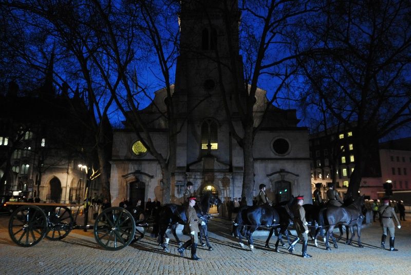 Планируется, что в среду гроб Тэтчер на пути к кафедральному собору Св. Павла пронесут под залпы выстрелов, которые будут совершаться с интервалом в одну минуту. Уважая покой жителей, звук выстрелов на репетиции был заменен на выкрики «Bang!» («Бам!»), пишет The Guardian.