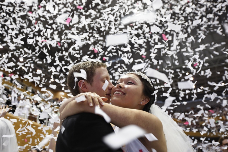 В воскресенье, 17 февраля, «Церковь Объединения» провела одновременную церемонию бракосочетания более чем для 24 тыс. своих последователей по всему миру. Самое массовое мероприятие прошло в Южной Корее, где узами брака соединились примерно 3 500 пар.