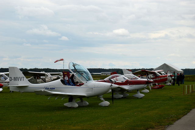Вчера адажский аэродром принял 26 самолетов из Германии. Все самолеты — частные. Для их владельцев полеты — хобби.