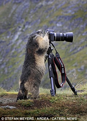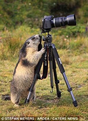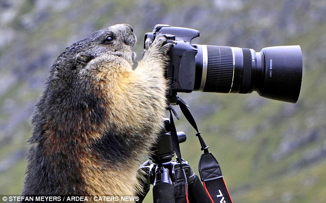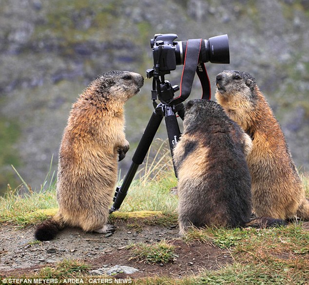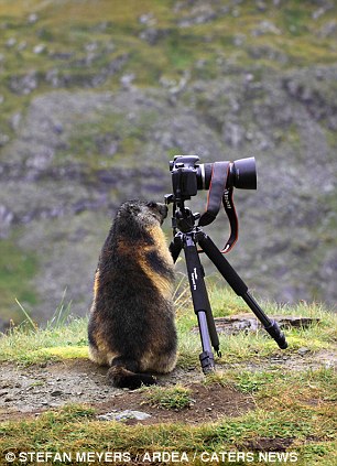 Фотограф Стефан Мейерс (Stefan Meyers) фотографировал сурков в австрийских Альпах, когда произошло нечто странное. Один из казалось бы пугливых сурков подошел к его камере и внимательно посмотрел в объектив, пишет Daily Mail.