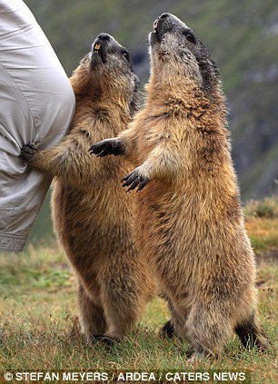 Сурки, которые часто попадают на фотографии туристов, решили, что пришел час поменяться ролями.