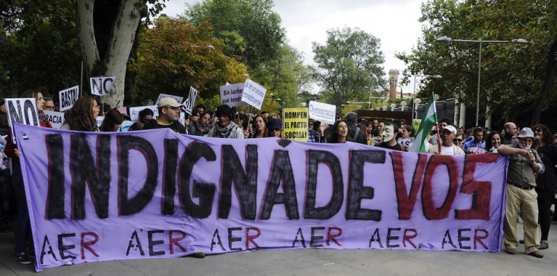 За несколько часов до начала запланированной демонстрации на площади Plaza de Neptuno в Мадриде, что находится в 100 м от здания парламента, начали собираться толпы людей. Еще около 200 людей собрались напротив железнодорожной станции Аточа. Пока за ними наблюдали полицейские, люди скандировали различные лозунги, например, «Спасите демократию!» и «Это не кризис, а обман!», сообщает AFP.