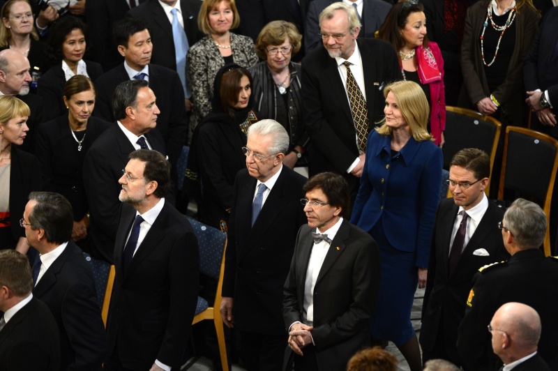 Норвежский Нобелевский комитет присудил Нобелевскую премию мира Евросоюзу в октябре, объявив, что организация помогла «превратить Европу из охваченного войной континента в континент, на котором долгое время процветает мир». «Шестьдесят лет мира – это произошло впервые за всю долгую историю Европы», — подчеркнул заслугу интеграционного объединения в интервью Reuters ван Ромпей.