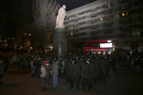 Несмотря на то, что организаторы митинга призвали игнорировать провокации со стороны полиции, стычки с защитниками правопорядка все же произошли – против участников демонстрации были применены слезоточивый газ и стеки. Участники митинга в свою очередь безуспешно пытались повалить памятник Ленину и ворвались в Киевскую городскую думу.