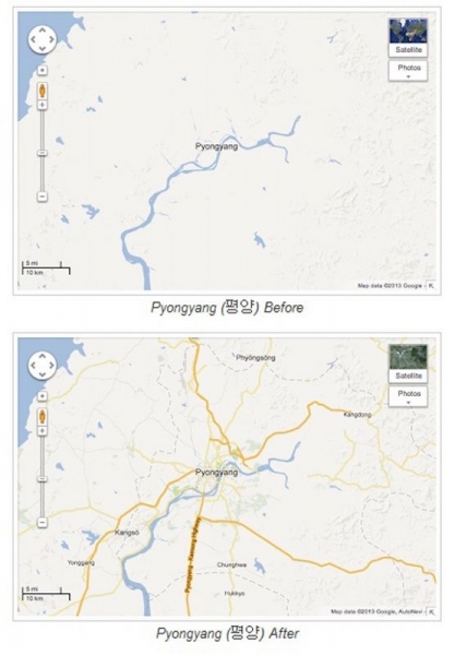 «Хотя Северная Корея вызывает интерес у многих людей в мире, эти карты особенно важны для южнокорейцев, многие из которых имеют родственников на севере», — пояснил старший менеджер Google Map Maker Джэйант Мисор.