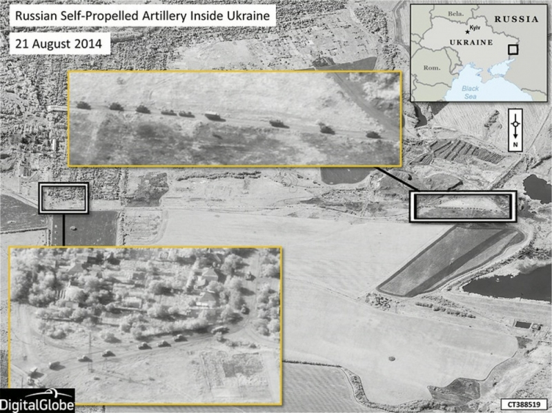НАТО обнародовала спутниковые снимки в доказательство якобы участия российских военных в операциях на Украине. Как утверждается, снимки получены в конце августа.