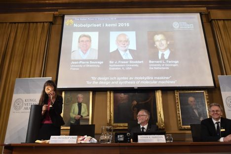 Лауреатами Нобелевской премии по химии 5 октября объявлены французский, шотландский и нидерландский химики, спроектировавшие и синтезировавшие молекулярные машины.