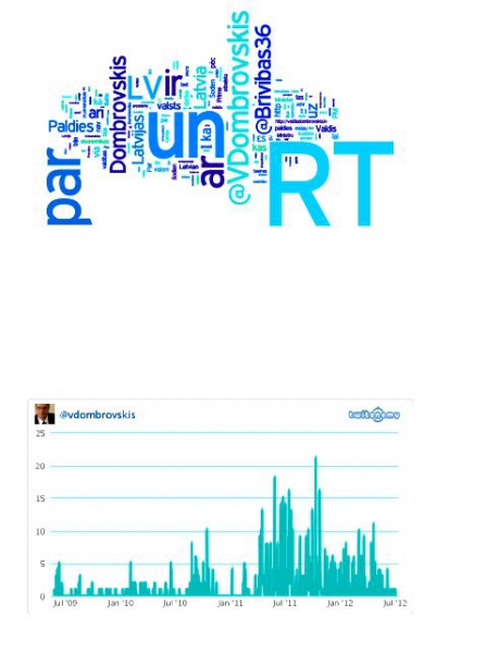 Премьер-министр Валдис Домбровскис (@VDombrovskis) присоединился к Twitter 24 мая 2009 года. Почти половина сообщений премьера – ретвиты сообщений Кабинета министров и других госучреждений.