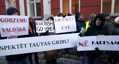 Около 100 человек во вторник, 22 января, собрались на акцию протеста возле Сейма. Демонстрируя различные плакаты и выкрикивая лозунги, люди требовали не утверждать правительство кандидата в премьеры Кришьяниса Кариньша («Новое Единство»).