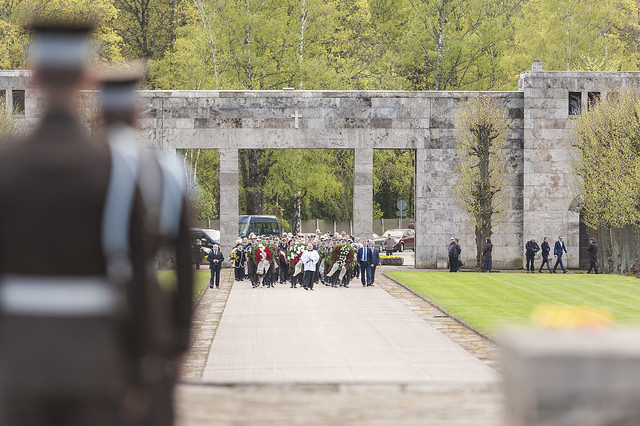 Сегодня, 8 мая, около 200 человек пришло на Братское кладбище почтить память латвийских солдат, павших во Второй мировой войне.
