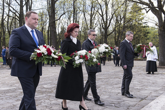 Среди пришедших были президент Латвии Андрис Берзиньш, премьер-министр Лаймдота Страуюма, председатель Сейма Инара Мурниеце, министр иностранных дел Эдгарс Ринкевичс, министр обороны Раймондс Вейонис, депутаты Сейма, мэр Риги Нил Ушаков, представители Национальных вооруженных сил Латвии, дипломаты, представители различных организаций и обществ, а также ветераны войны.