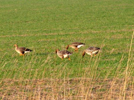 Визиты перелетных птиц на посевные поля заметно участились, поскольку в последние годы в Латвии введена так называемая практика «зеленого» земледелия, которое способствует увеличению площадей засевов бобовых (мотыльковых) культур, которые являются лакомым кормом для гусеобразных птиц.