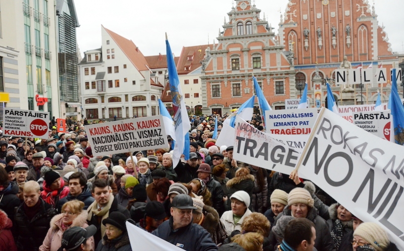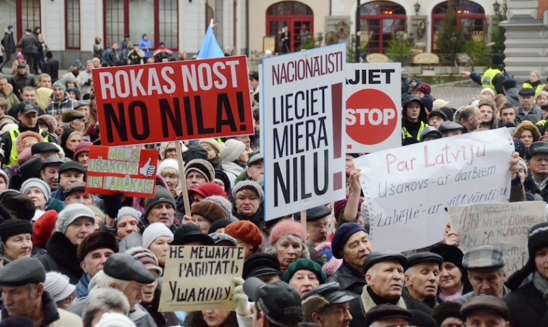 Возле Рижской думы 3 декабря собрались сотни сторонников и противников мэра Риги Нила Ушакова. Одни выражали ему поддержку, а другие – осуждение в связи с тем, что чиновник не взял на себя ответственность за трагедию в Золитуде и не последовал примеру премьер-министра Валдиса Домбровского, подавшего в отставку.