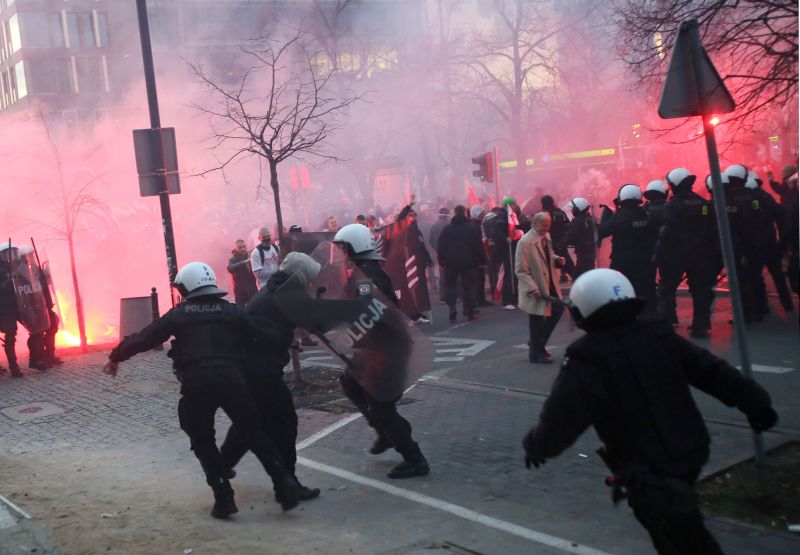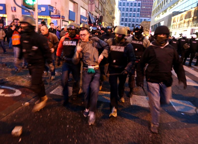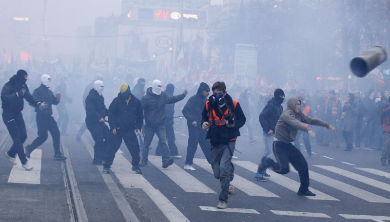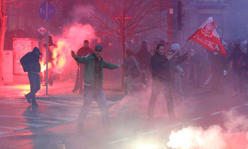 В День независимости Польши, 11 ноября, к месту проведения шествия националистов с целью не допустить беспорядков заранее были стянуты тысячи сотрудников правоохранительных органов, однако предотвратить насилие не удалось, сообщает BBC.