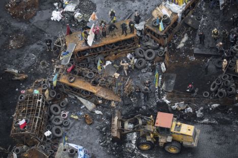 Активисты украинской оппозиции 16 февраля покинули занятую ранее Киевскую городскую думу и позволили снести часть баррикад в обмен на помилование задержанных протестующих.