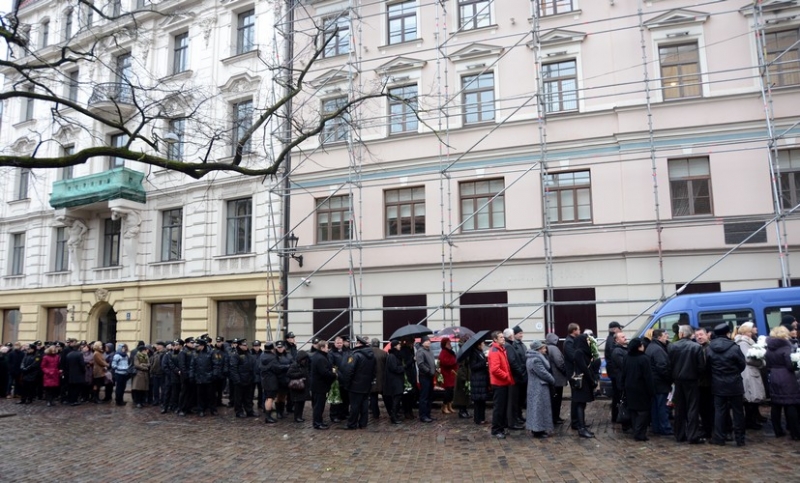 Прощальную церемонию посетили также президент Латвии Андрис Берзиньш, премьер-министр Латвии Валдис Домбровскис, министр внутренних дел Рихардс Козловскис и другие министры и депутаты Сейма.