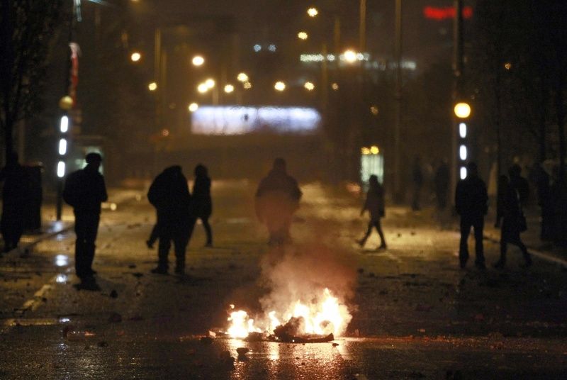 Участники акции стали бросать в полицейских кирпичи и бутылки с зажигательной смесью. Те в ответ попытались разбить толпу на несколько групп.