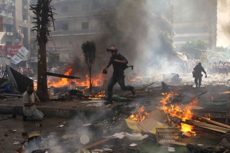 Исламисты вступили в столкновения с полицией и военными, которые применили бульдозеры, слезоточивый газ и военное снаряжение. Министерство здравоохранения Египта указало, что в Каире, Александрии и во многих других городах в результате столкновений погибли около 300 человек, а ранены более 2 000.