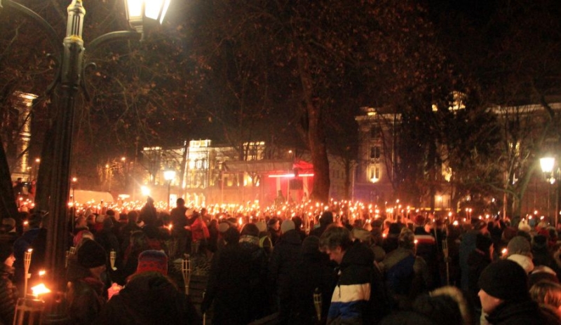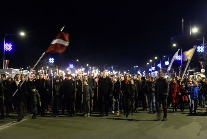 Факельное шествие, организованное «Национальным объединением Visu Latvijai-TB/LNNK» и обществом «Береги язык и Латвию!», началось с концерта возле памятника Карлису Улманису (Рига). В концерте приняли участие рок-группа Феликса Кигелиса Dūmi, Teikas muzikanti и хор поющей молодежи Нацобъединения. После концерта и торжественных обращений было зажжено более 13 000 факелов, и потом участники шествия отправились через Старую Ригу к набережной 11 Ноября, а затем по ул. Калькю к памятнику Свободы.