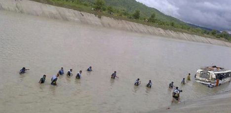 На мокрой и скользкой дороге водитель не справился с управлением и автобус съехал с дороги в заполненный водой канал, пишет The Associated Press.