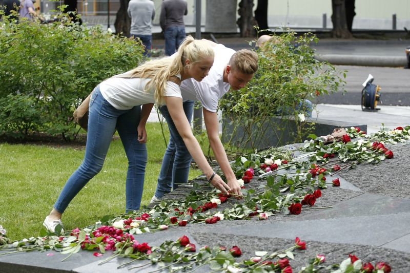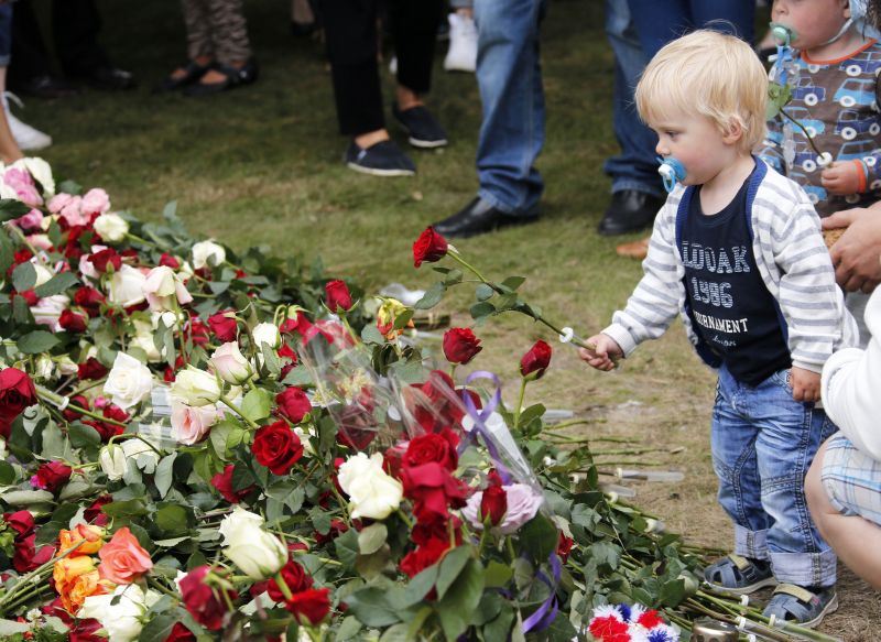 Премьер-министр Йенс Столтенберг (Jens Stoltenberg) принял участие в церемонии возложния цветов в Осло, а затем посетил остров Утойя, чтобы с сотнями людей помянуть погибших там молодых людей, пишет BBC.