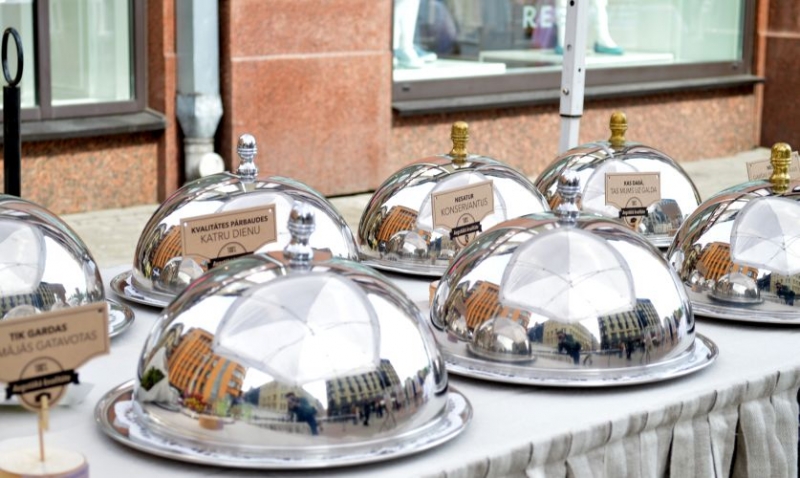 Сегодня в Старой Риге на площади возле перекрестка улиц Вальню и Калькю открылась художественная инсталляция «Блюдо без секрета».