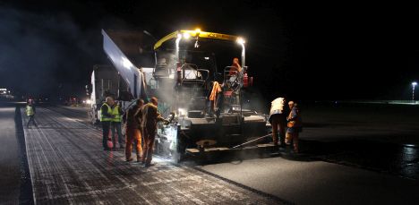 Строительство маневренных путей по сравнению с ремонтом автодорог существенно отличается несущей способностью и конструкцией, поскольку самолет и автомобиль — два совершенно разных механизма. В аэропорту сама эта конструкция гораздо толще, поскольку нагрузка на маневренные пути значительно больше. На шоссе толщина асфальта составляет 10-25 см в зависимости от интенсивности движения. На маневренных путях толщина асфальта такая же, однако слой щебня на нижнем уровне уже толще, а местами под асфальтом есть и слой бетона, толщина которого в разных проектах отличается. В данном случае маневренные пути не пришлось строить с нуля, их нужно было обновить, поскольку там уже была конструкция, которая исправлялась. Слой щебня на автодорогах составляет 25-30 см, а под полосой для самолетов — от 50 см до 1 метра.
