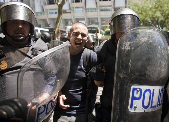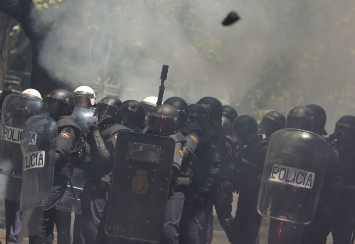 После предложения премьер-министра Испании Мариано Рахоя (Mariano Rajoy) повысить налог на добавленную стоимость (НДС) в Испании прошли массовые протесты, в которых пострадали 76 человек. По словам очевидцев, для разгона толпы полицейские применяли резиновые пули и стеки.