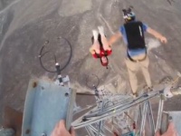 Это видео пощекочет нервы: каскадеры с видеокамерами, которые закреплены на их шлемах, прыгают с телекоммуникационной башни. Один из них просто снимает полет в свободном падении, а второй еще умудряется сделать девять кувырков.