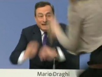 Вчера во время пресс-конференции Европейского центрального банка (ЕЦБ) во Франкфурте на стол к президенту ЕЦБ Марио Драги запрыгнула неизвестная женщина и стала выкрикивать: «Нет диктатуре ЕЦБ!».