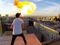 Исполнил известный трюк с огнем Дэвид Келли (David Kelley), стоя на одной из крыш Сан-Франциско в США.